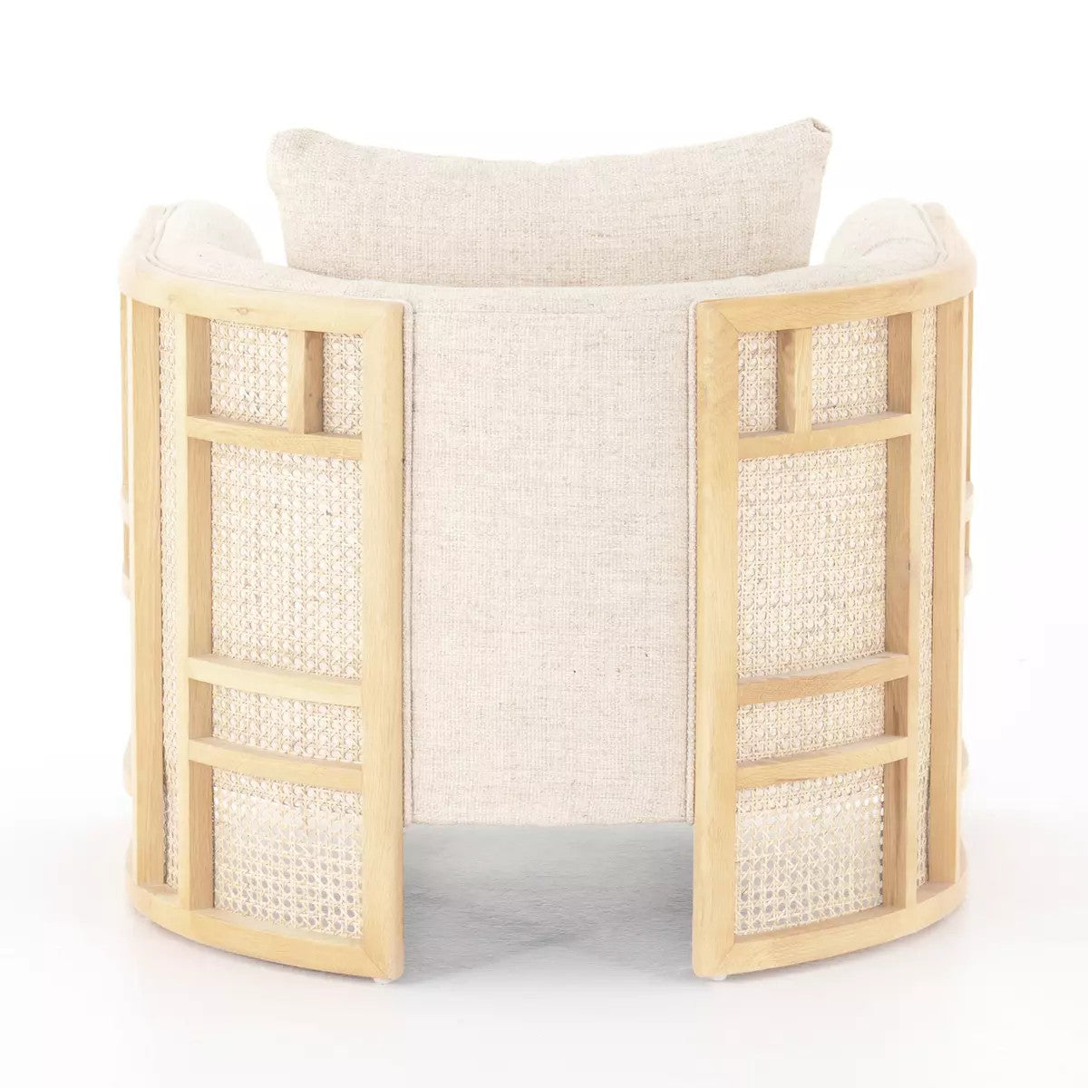 Materials: 66% Polyester, 19% Acrylic, 15% Flax/Linen, Solid Oak, Cane