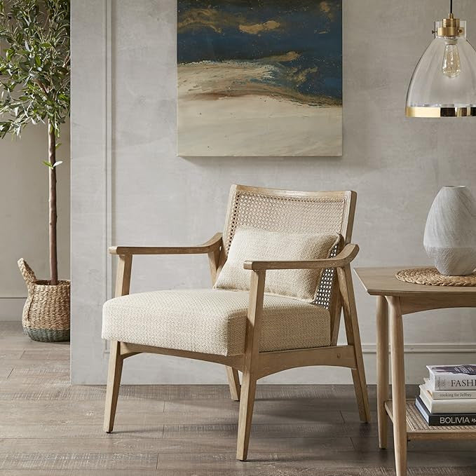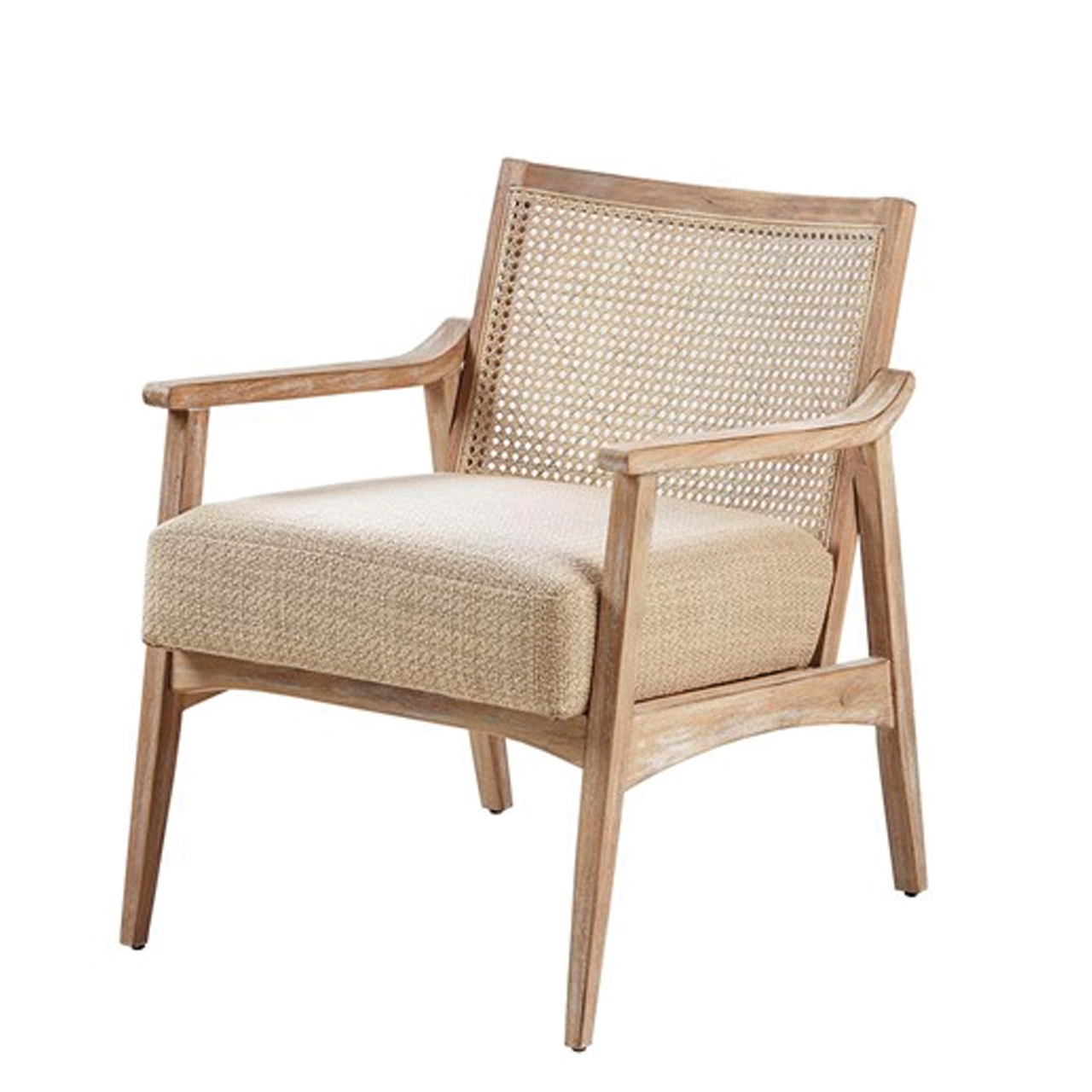 The INK+IVY Kelly Accent Chair offers a charming urban farmhouse appeal to your home decor. Featuring a cane inset back and an upholstered seat, this lounge chair provides exceptional comfort. The solid wood frame showcases a reclaimed wheat finish and classic mid-century styling, for a warm and natural look. Place this lounge chair in your living room or home office to give your space a pleasantly relaxing allure.