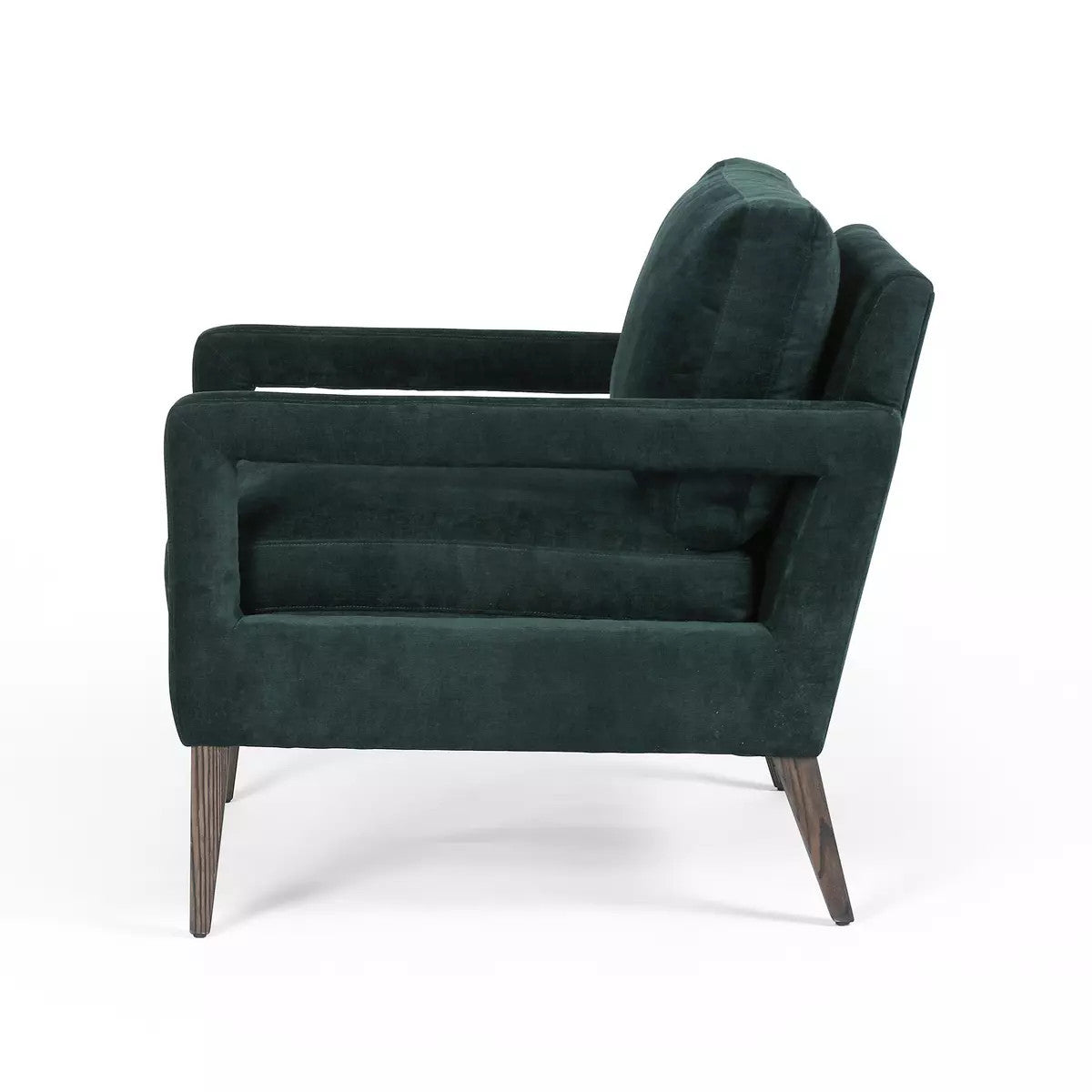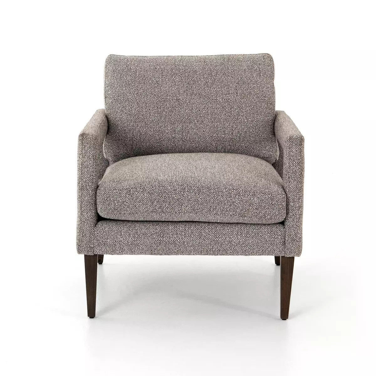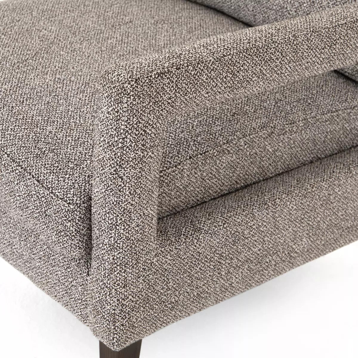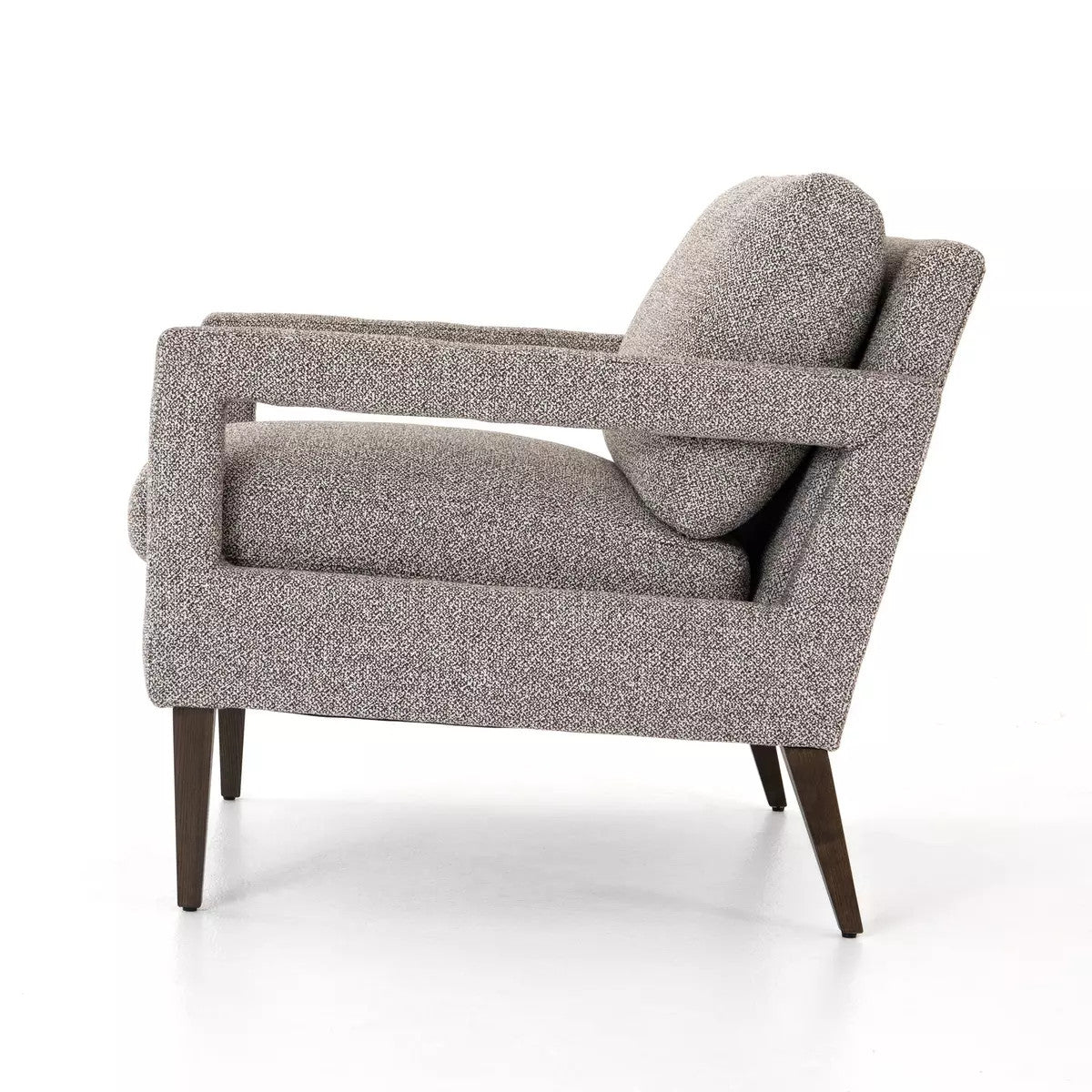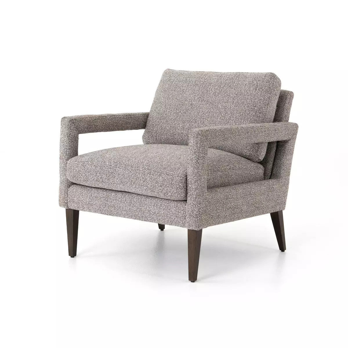A clean, sophisticated silhouette meets butterscotch top-grain leather with side-arm cutouts, for a balanced look with midcentury vibes. Finished with tapered oak legs.