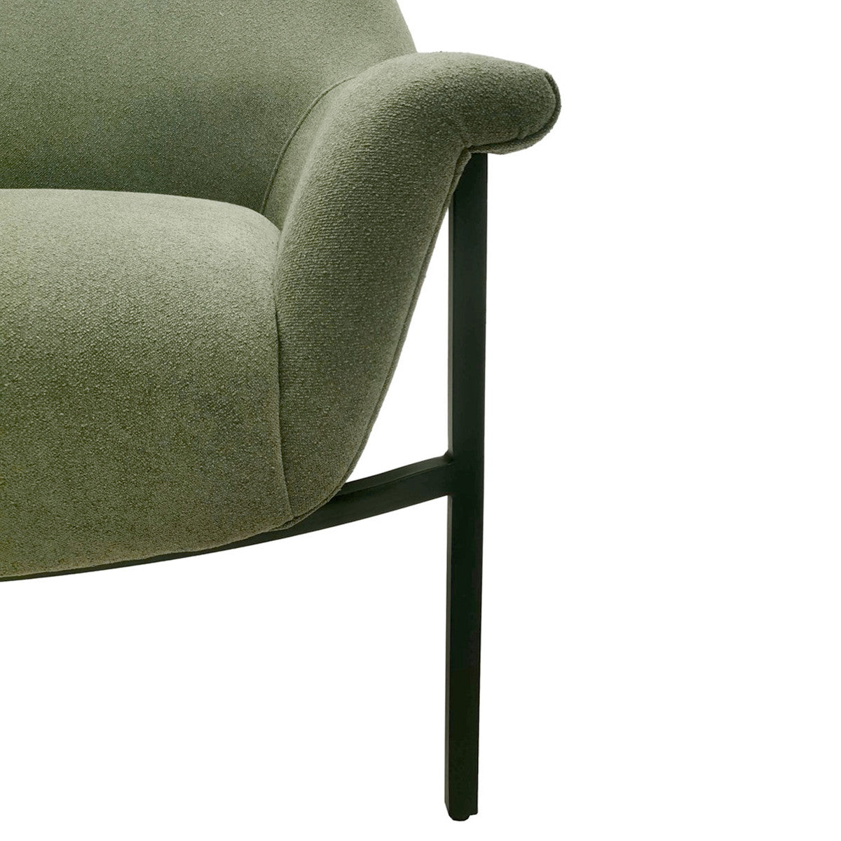 Indulge in comfort and support with the Chapel Hill Green Sabrina Metal Leg Accent Chair. Covered in a regal Laurel green upholstery, the curved back hugs a gererously cushioned seat with soft high-resilience foam padding. The slender metal legs feature an iron black metal finish to complement the upholstery and complete the contemporary design. The simplified profile and modern styling of this chair provide a polished and sophisticated look for any room in your home.