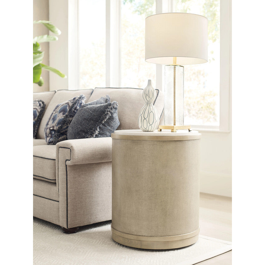 Treasure awaits with the stunning Hidden Treasures Round End Table from Hammary Furniture. This global-inspired beauty brings exotic flair to any space with elegant quartz top with a polished look. Inspired by furnishings from around the world, this end table instantly upgrades your living room, bedroom or office with its unique woven design. Place it next to a sofa or chair to hold lamps, books, decor and more. The neutral tones blend effortlessly into both traditional and contemporary rooms.