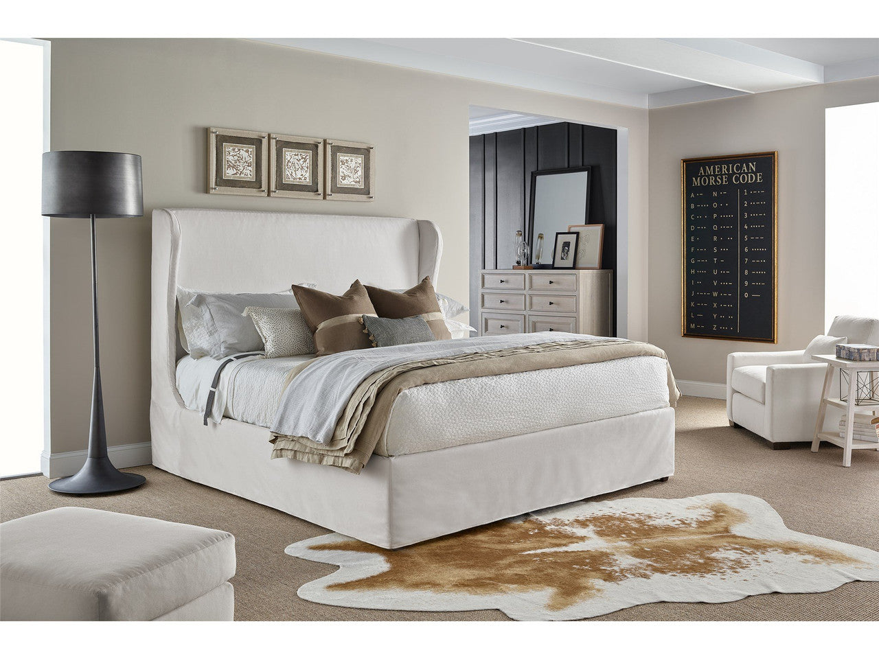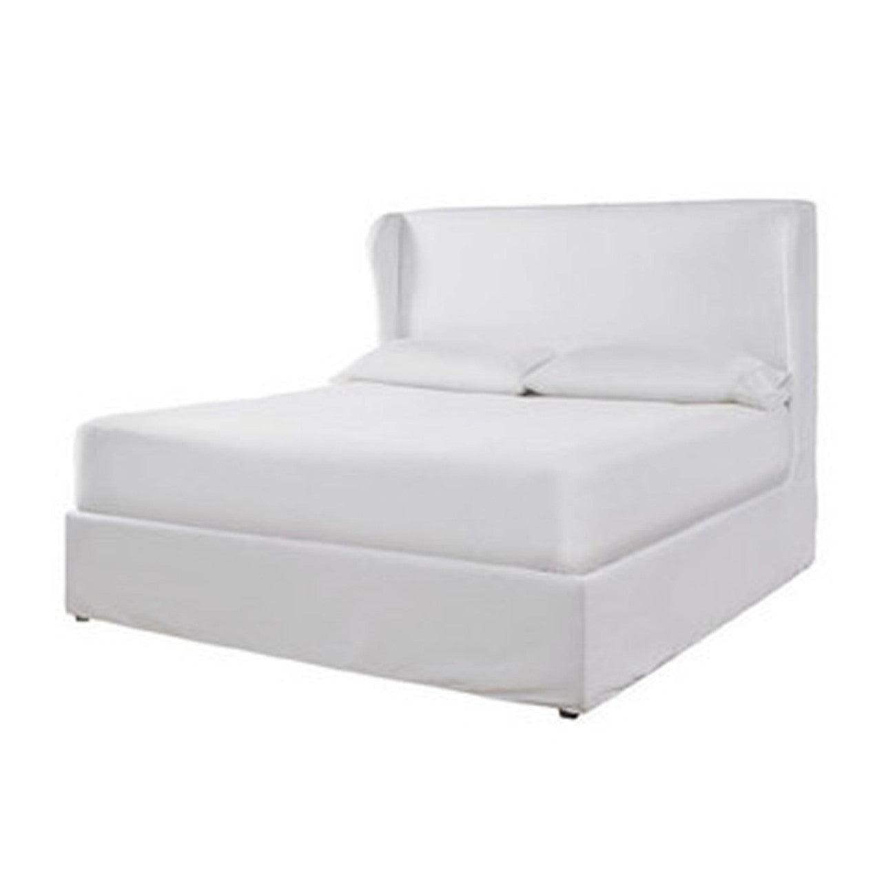 Elevate bedroom spaces with the Delancey Bed, a fresh take on a classic style featuring a performance upholstered body and a subtle wing-inspired details.