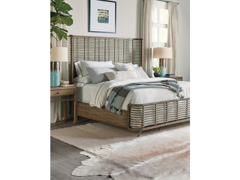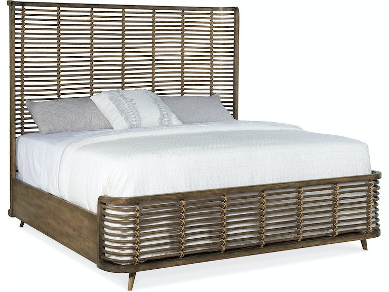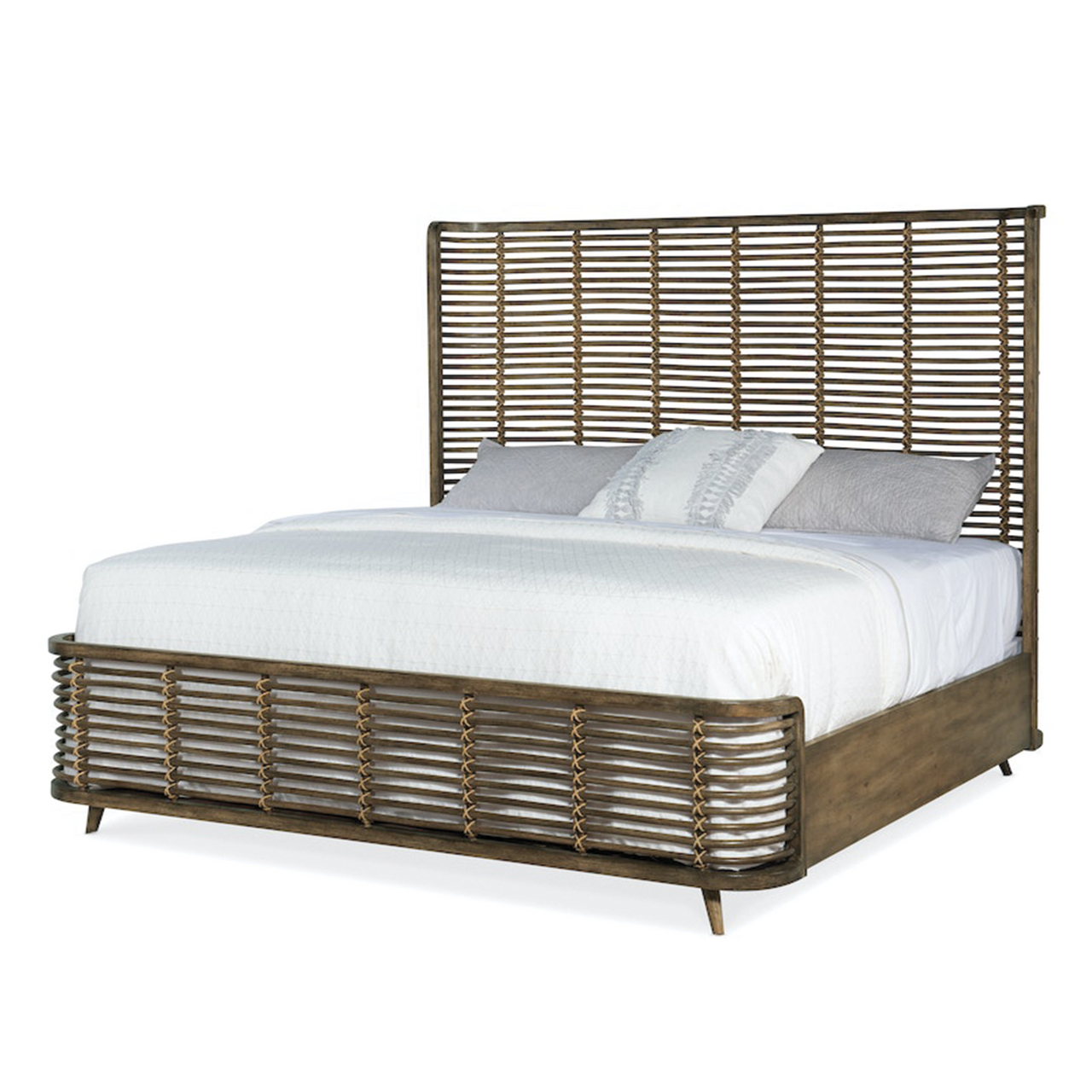 Crafted of Pecan Veneers, Cane, Raffia and hand-tied Jute Rope, the Sundance King Rattan Bed epitomizes a relaxed California casual lifestyle. The signature bed is finished in a rich dynamic brown finish called Cliffside with light burnishing on the edges. Includes the headboard, footboard and rails. Calling on inspiration from the iconic Pacific Coast Highway and the picturesque Malibu landscape, Sundance presents a clearly California casual aesthetic. Featured in Cliffside, a rich, dynamic brown finish with light burnishing on the edges, the collection combines a variety of natural materials including rattan, jute rope, stone, gypsum, bamboo and driftwood motifs to present a sophisticated style that can instantly create a calming resort-inspired retreat in your very own home.