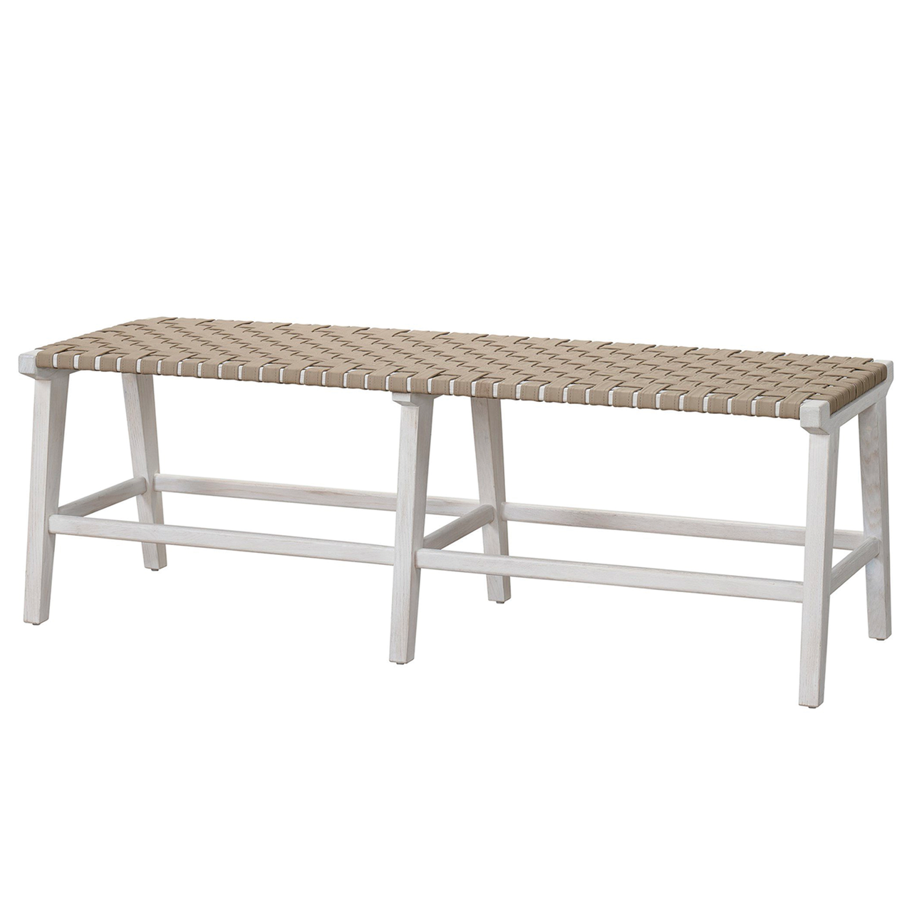 Accentuate bed ends or other areas of the home in need of extra seating with the Harlyn Bench, a stylish furnishing with a woven faux-leather seat atop a cleanly angled base.