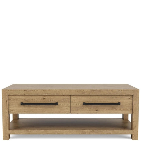 The Davie Rectangular Coffee Table from Riverside Furniture is a blend of functionality and style, perfect for enhancing your living space. Constructed from select hardwood solids and oak veneer, this coffee table features a Pale Oak finish that highlights the natural beauty of the pin knotty oak.
