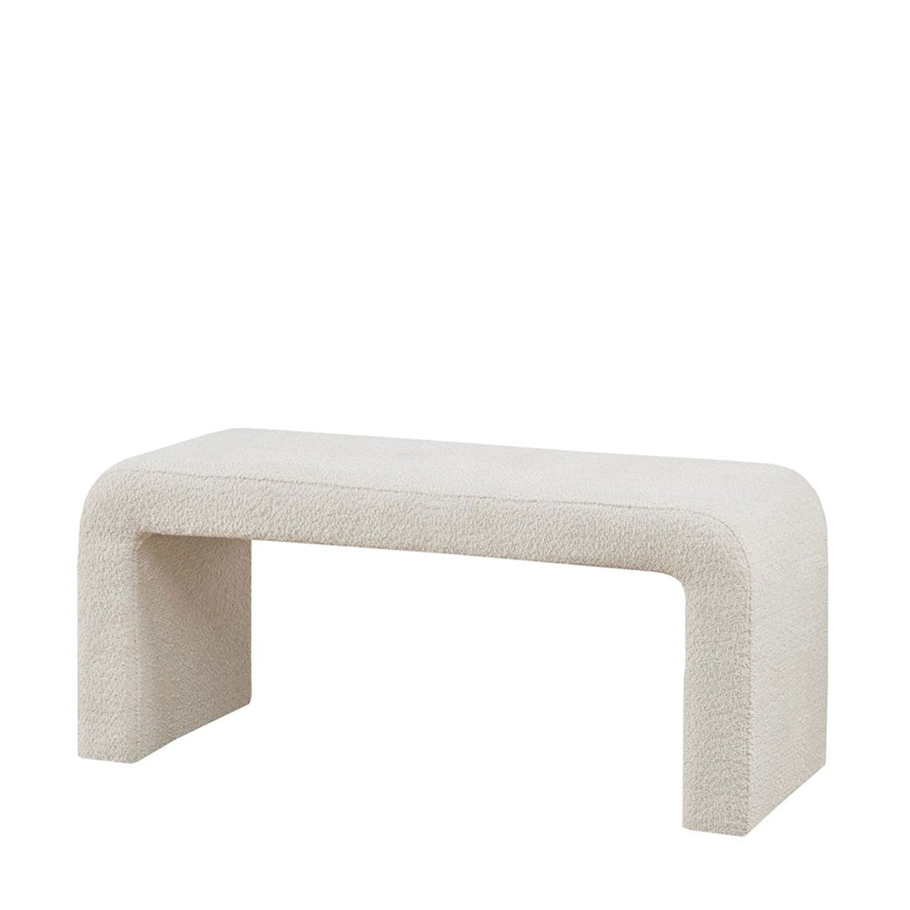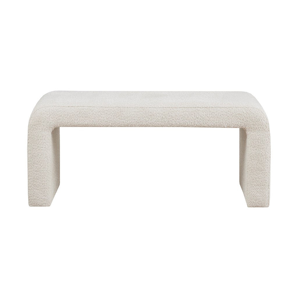 Steve bench has a sleek waterfall design with rounded corners and is upholstered in soft, textured boucle fabric. Perfect addition to any modern contemporary home and also provides a comfortable and cozy place to sit while putting on your shoes or in the bedroom as an extra seat. Requires no assembly.
