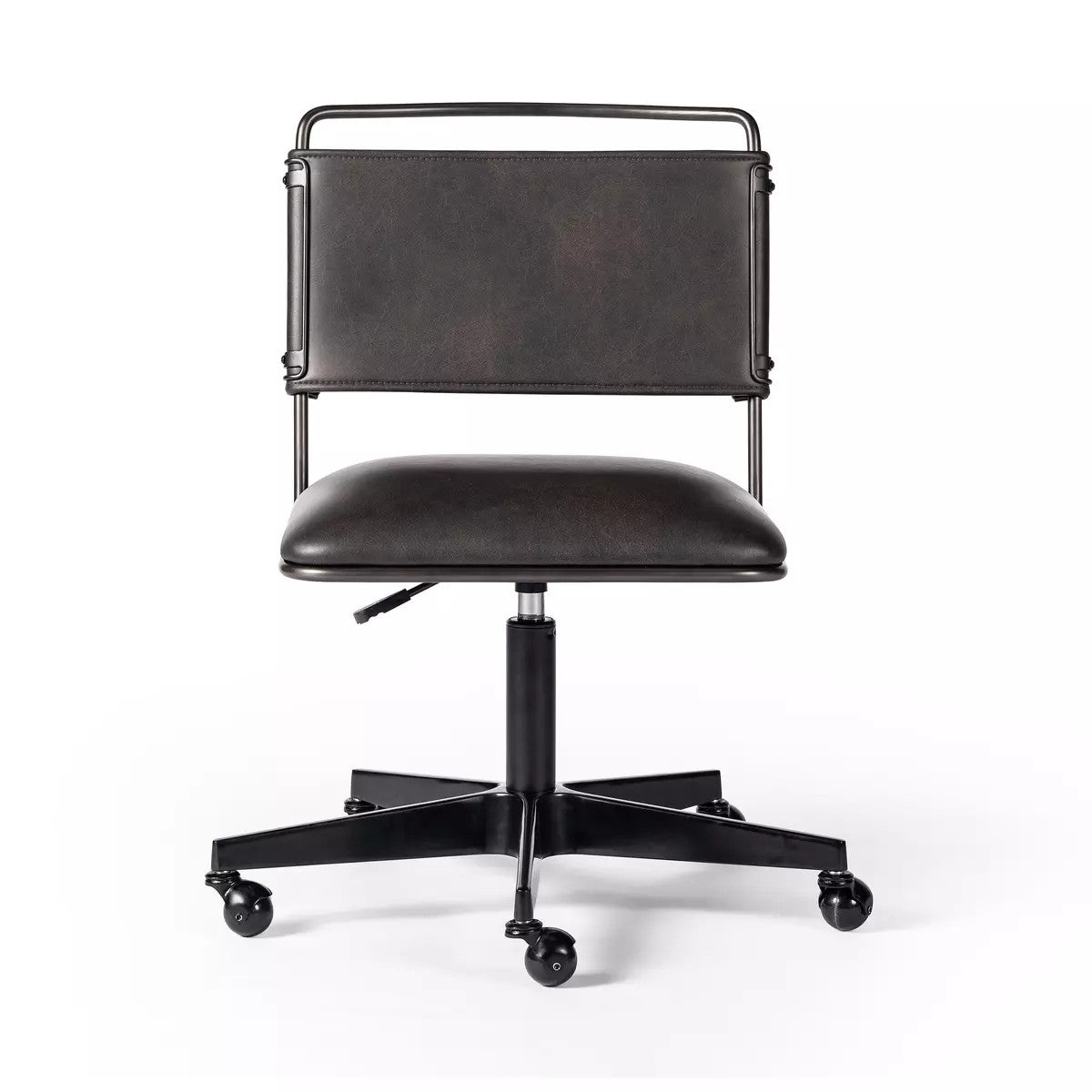 Slim lines and mixed materials combine for ample comfort. Architecturally inspired steel tubing is graced by simply contoured seating atop a 360 swivel.
