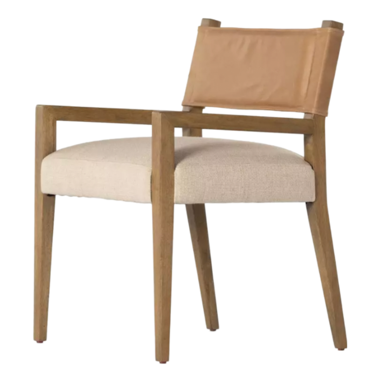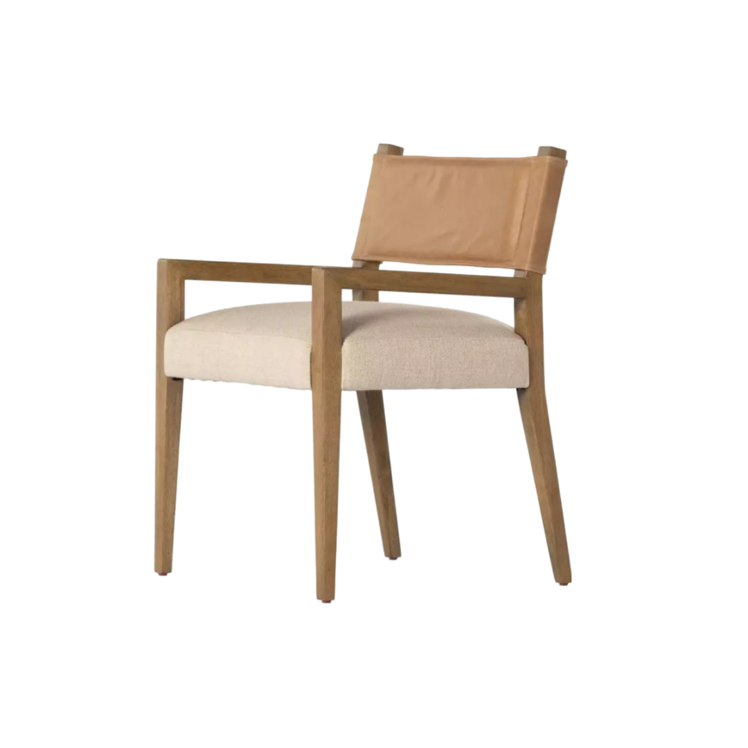 Materials: 66% Polyester, 19% Acrylic, 15% Flax/Linen, Solid Parawood, Top Grain Leather