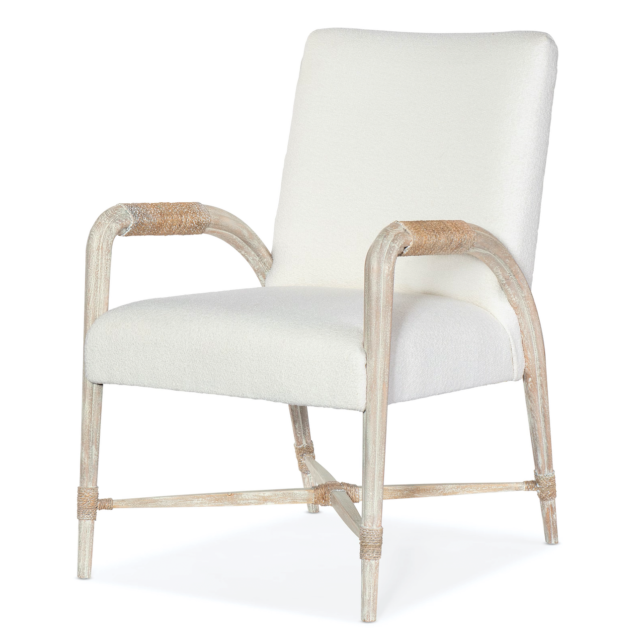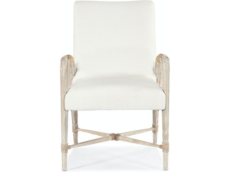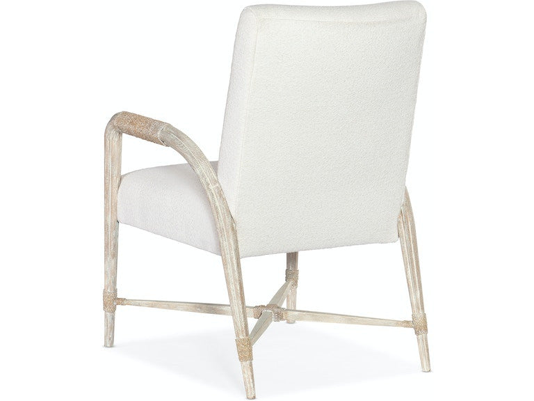 The Serenity Arm Chair is a comfortable and inviting piece that brings the calm atmosphere of the outdoors indoors. Beech wood arm chair with rope-wrapped arms and a chic X stretcher base; the seat and back are upholstered in the cozy Macrame Artic fabric. The hue of the airy and light Surf finish is whitewashed. The Serenity collection, which aims to create a cozy and welcoming haven within the house, is distinguished by its easygoing finishes and range of natural textures and materials that come together to produce a laid-back look.