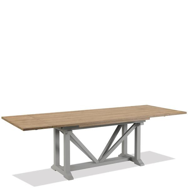 Extends to 100" W with leaf inserted on each side.
