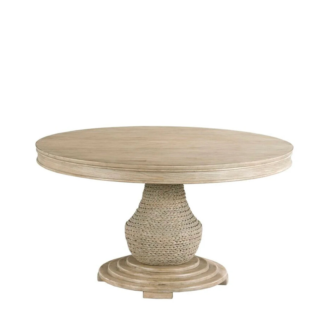 Round dining table married with either chair combination will be the centerpiece to any dining room. Seagreass and wood base with a wood top is the ultimate conversation piece.