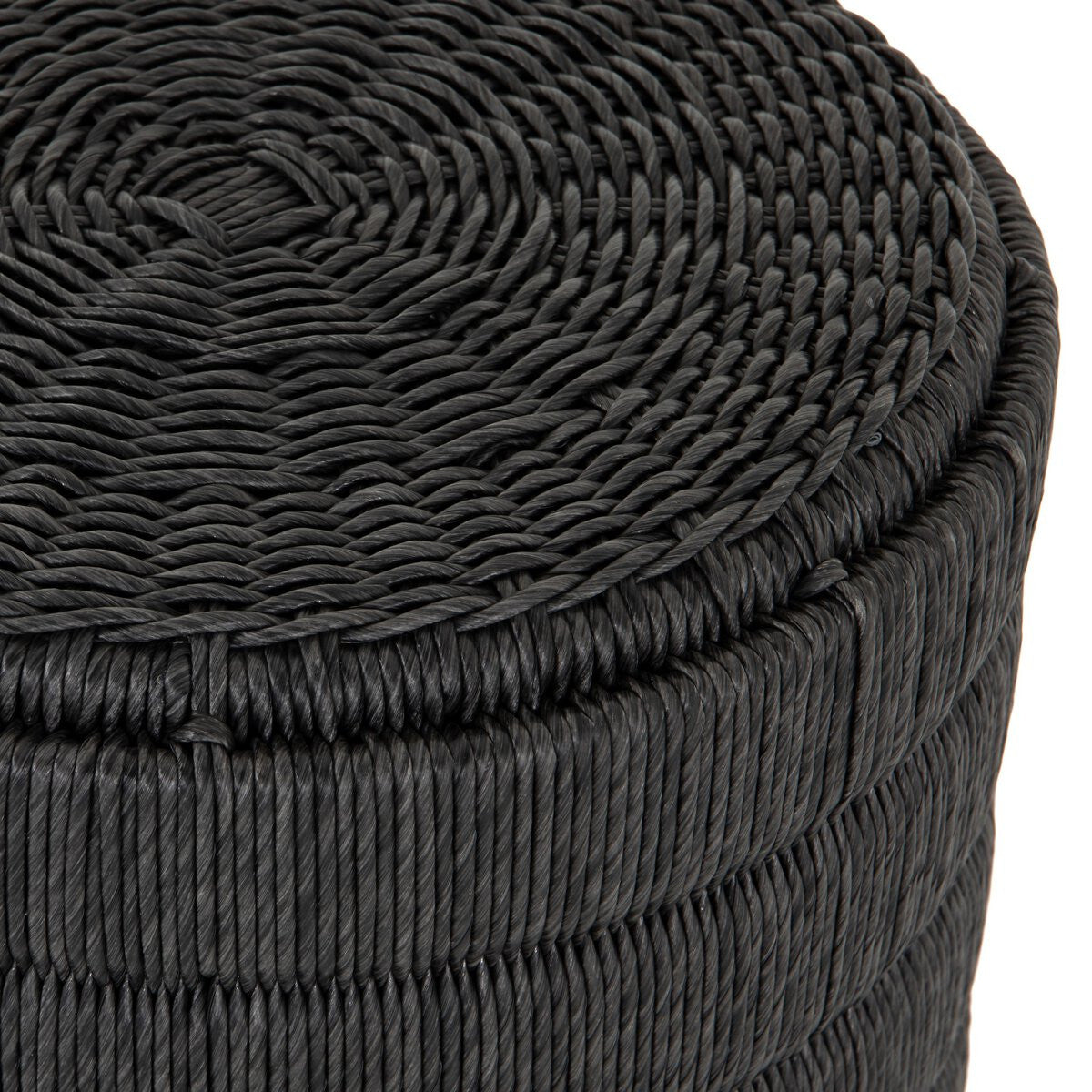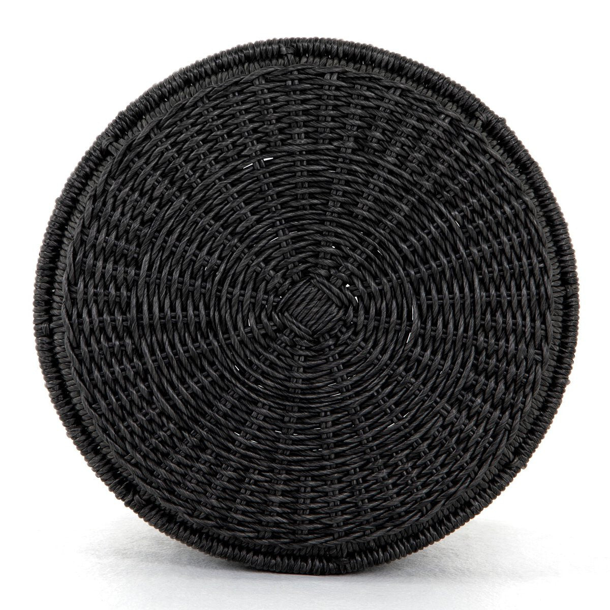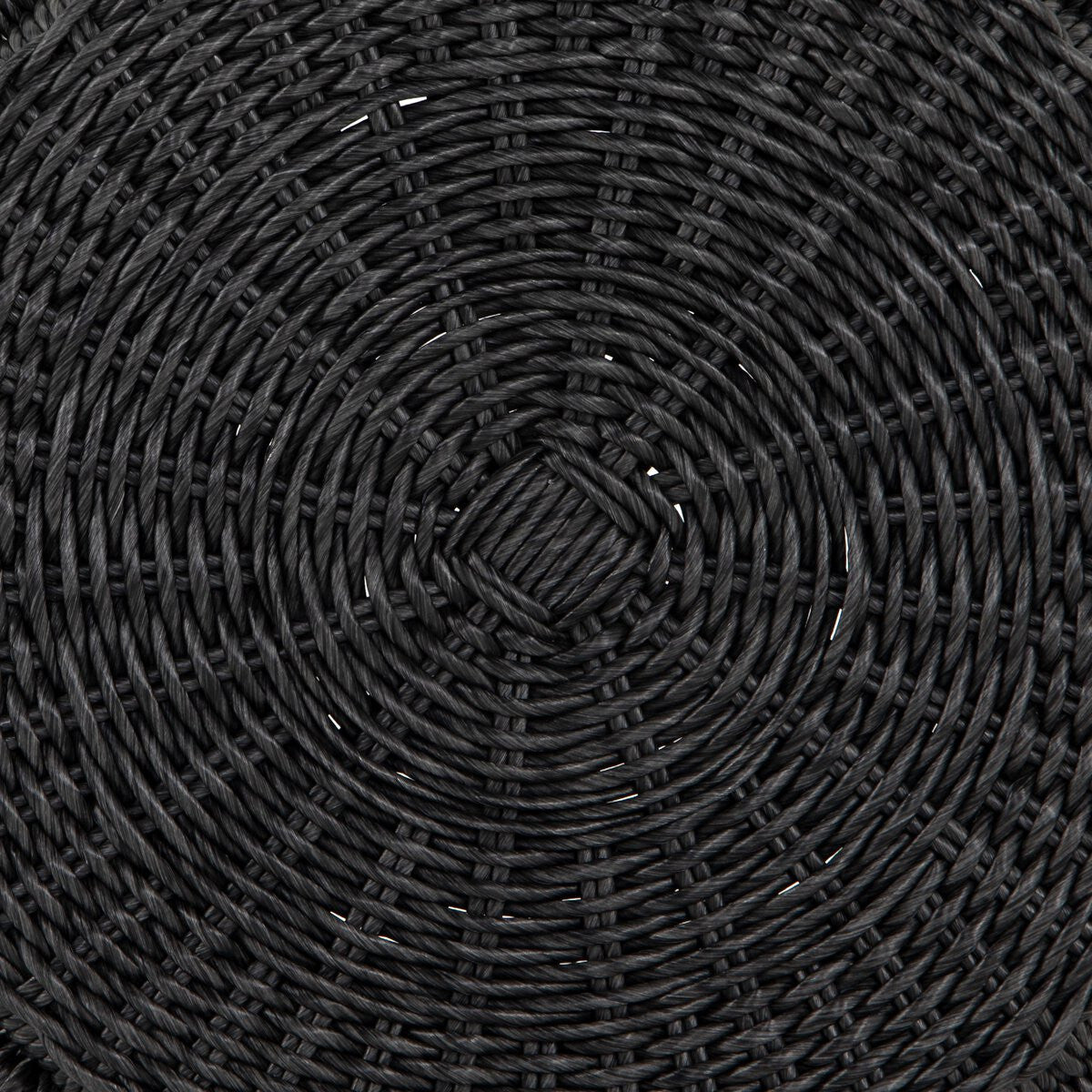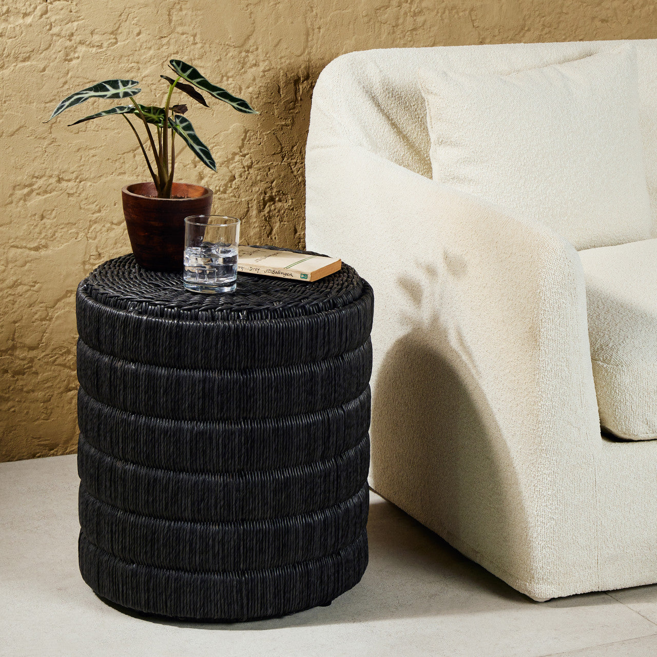 Finished in a deep coal, all-weather wicker beautifully rounds to form a texture-driven end table. Cover or store inside during inclement weather and when not in use.