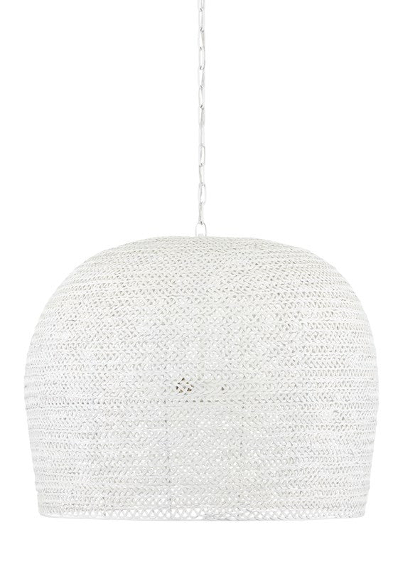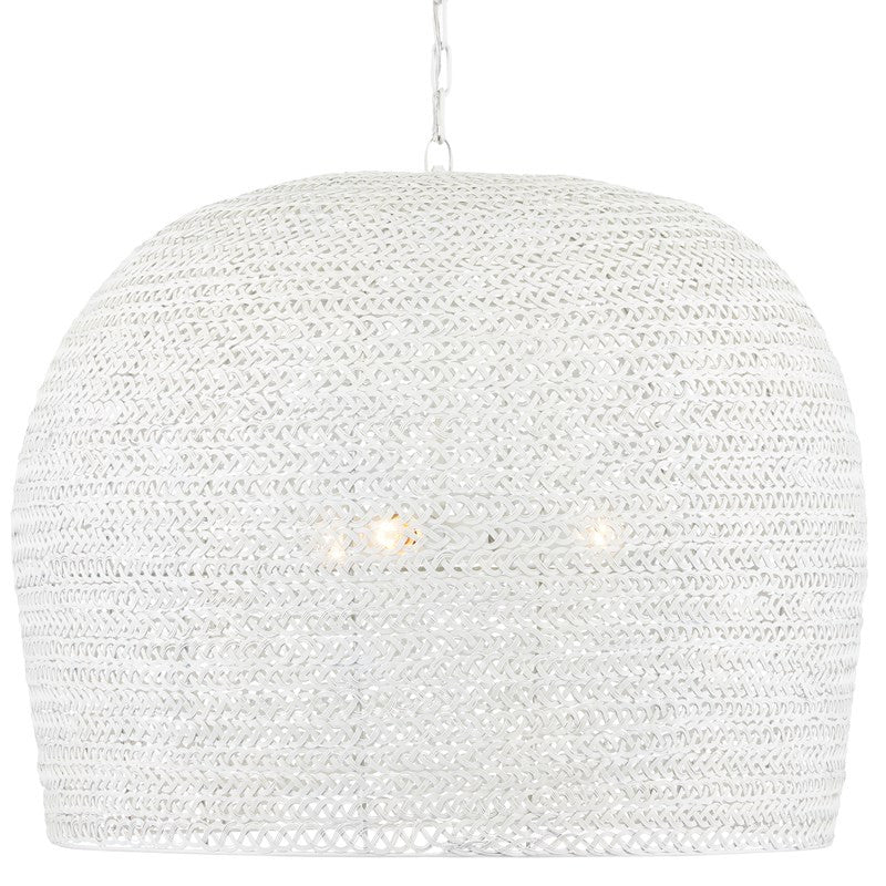 The Piero White Large Chandelier may appear to be woven from a natural plant material, but it is made of iron in a white finish to make it one of our offerings that illustrates the skills that our craftspeople bring to their work. When the white chandelier is illuminated, textural patterns will enliven surrounding surfaces.