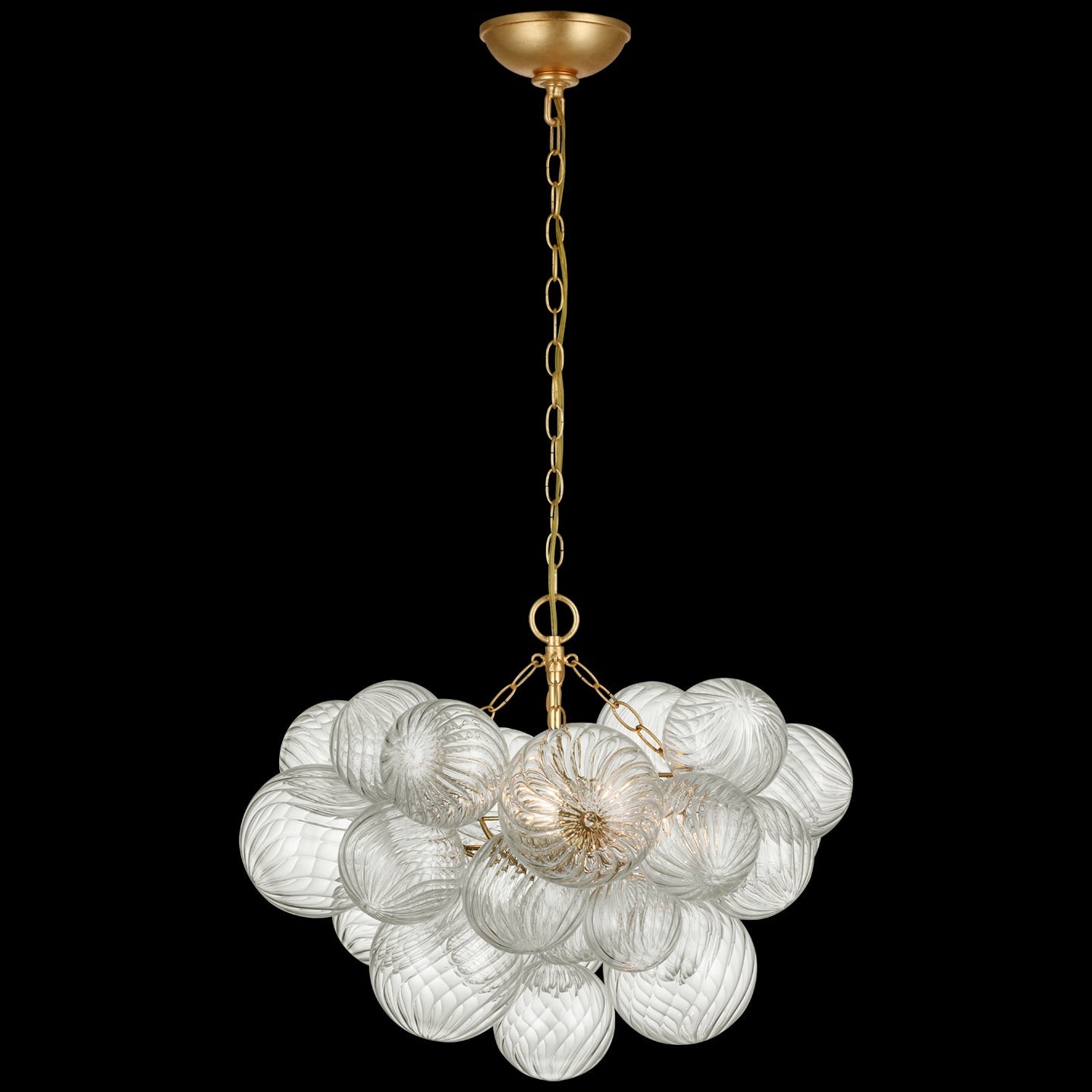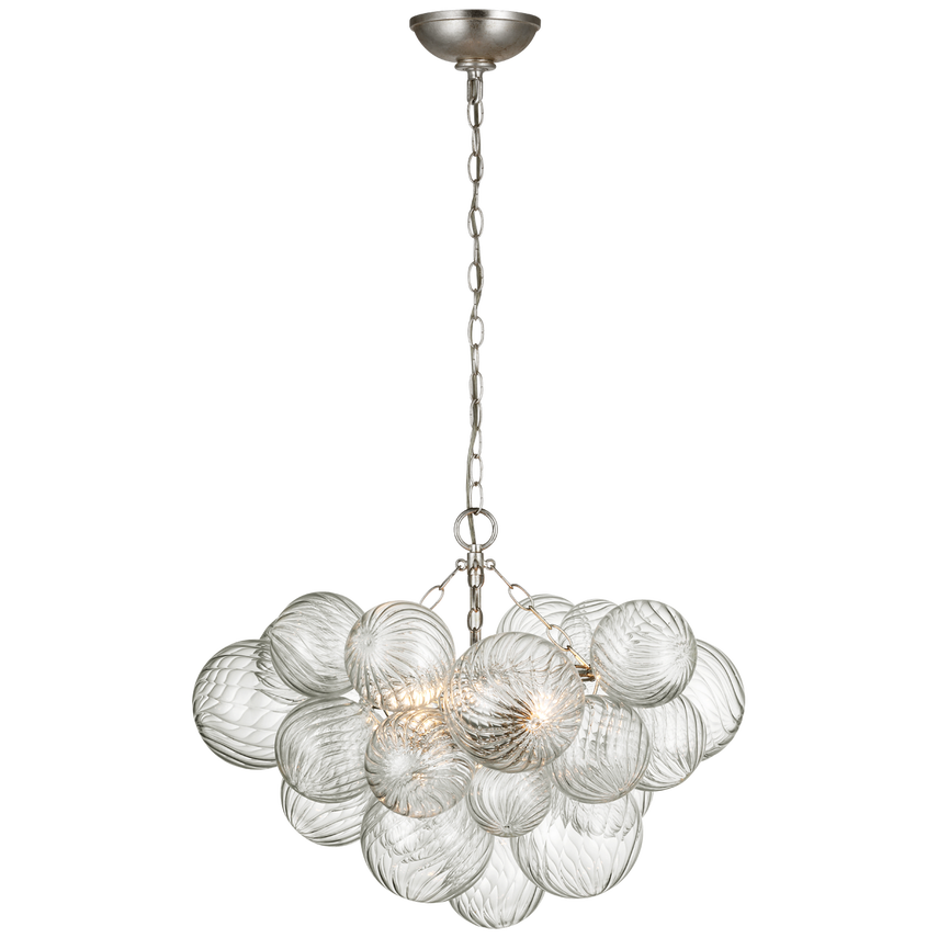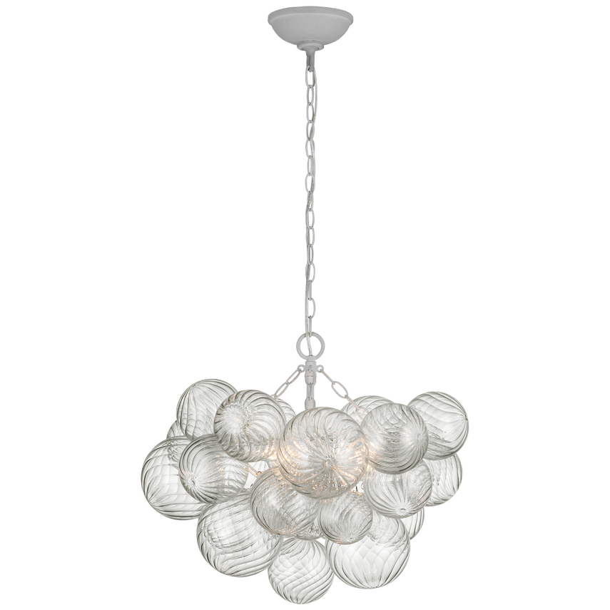 Artisanal glass elevates the Talia series by Julie Neill for a new take on the simple glass globe light fixture. Light shimmers through multiple swirled glass orbs attached to metal baskets, creating a whimsical flourish. Available in a range of sizes and configurations, the Talia series adds a dynamic mix of sparkling glass, rounded forms, and bright metals to any interior. Choose a chandelier for entryways and dining areas, flush-mounts or wall sconces for living spaces or bedrooms, and add a playful, feminine touch to any space.