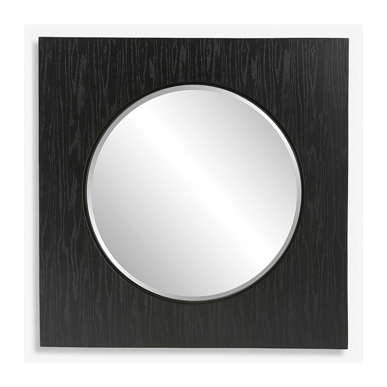 Bring a touch of the outdoors in with the Hillview Mirror. The beveled mirror is surrounded by a solid wood panel finished in a black stain with natural wood grain details.