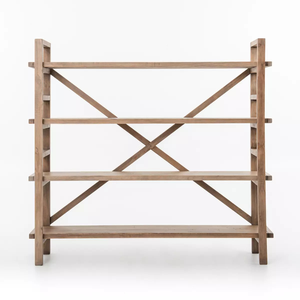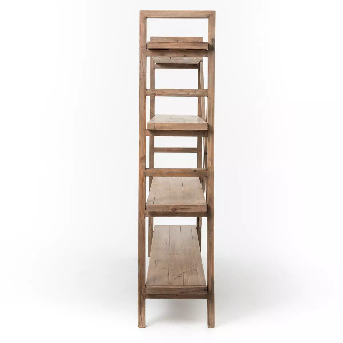 Four movable planks of reclaimed pine stack for an open display of personal treasure. Laddered framing offers eye-catching simplicity while enhancing a clean farmhouse feel.