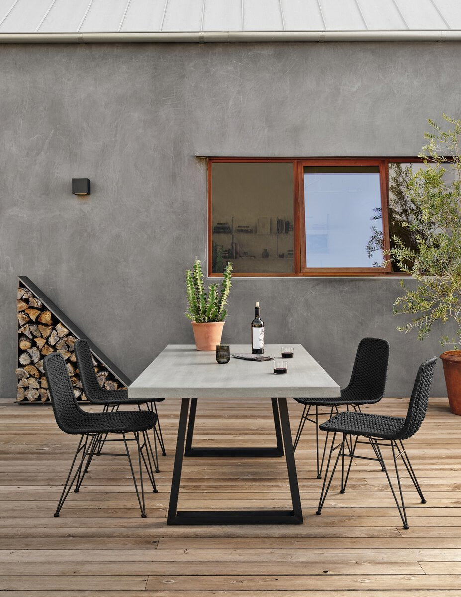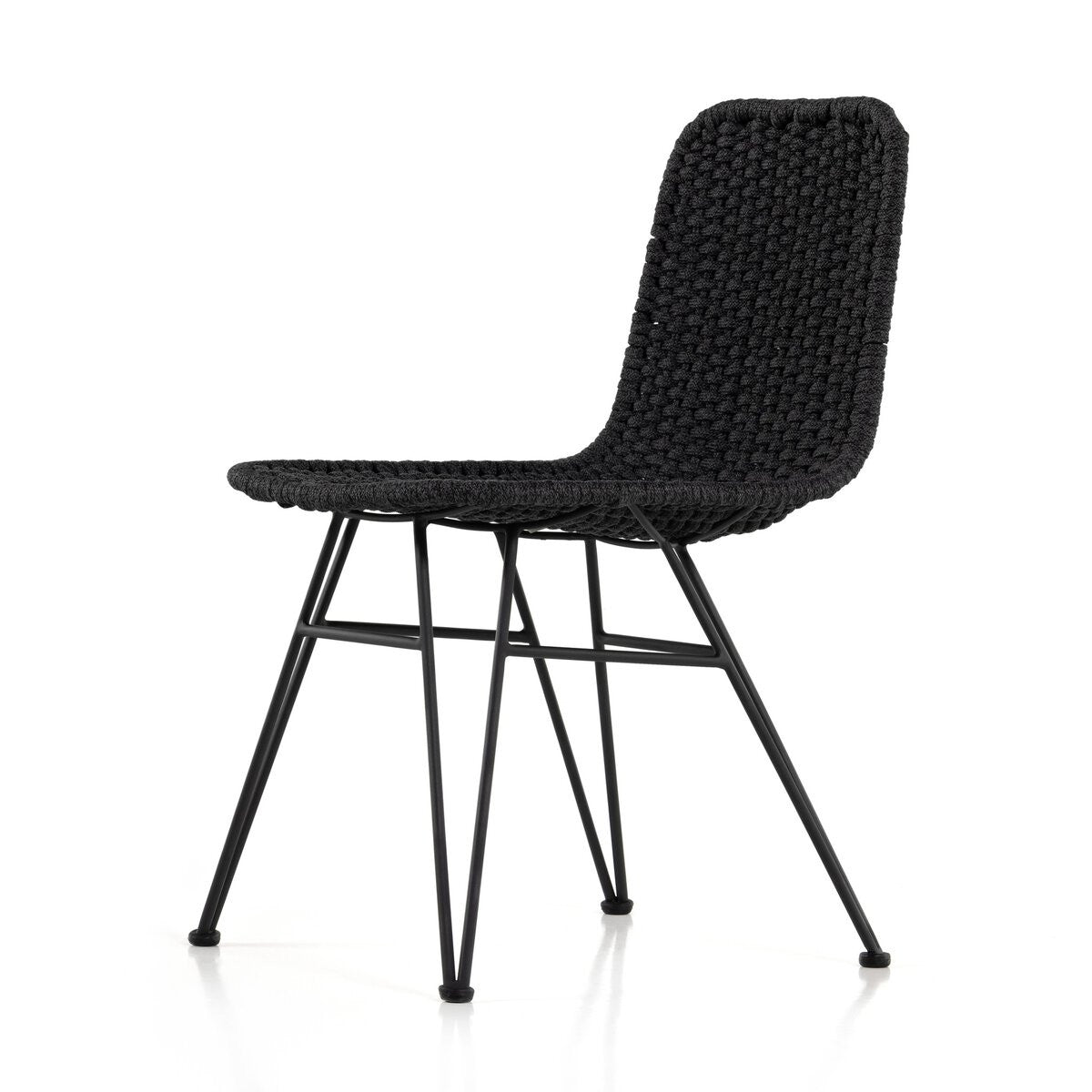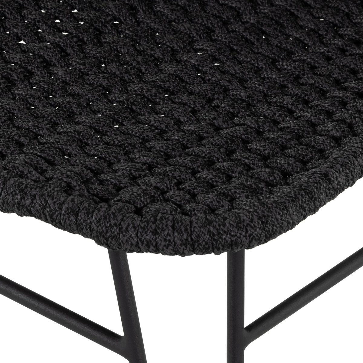 Bring a touch of texture outdoors. Armless seating weaves with olive hues atop charcoal-finished hairpin legs for a sleek, modern look. Cover or store indoors during inclement weather and when not in use.