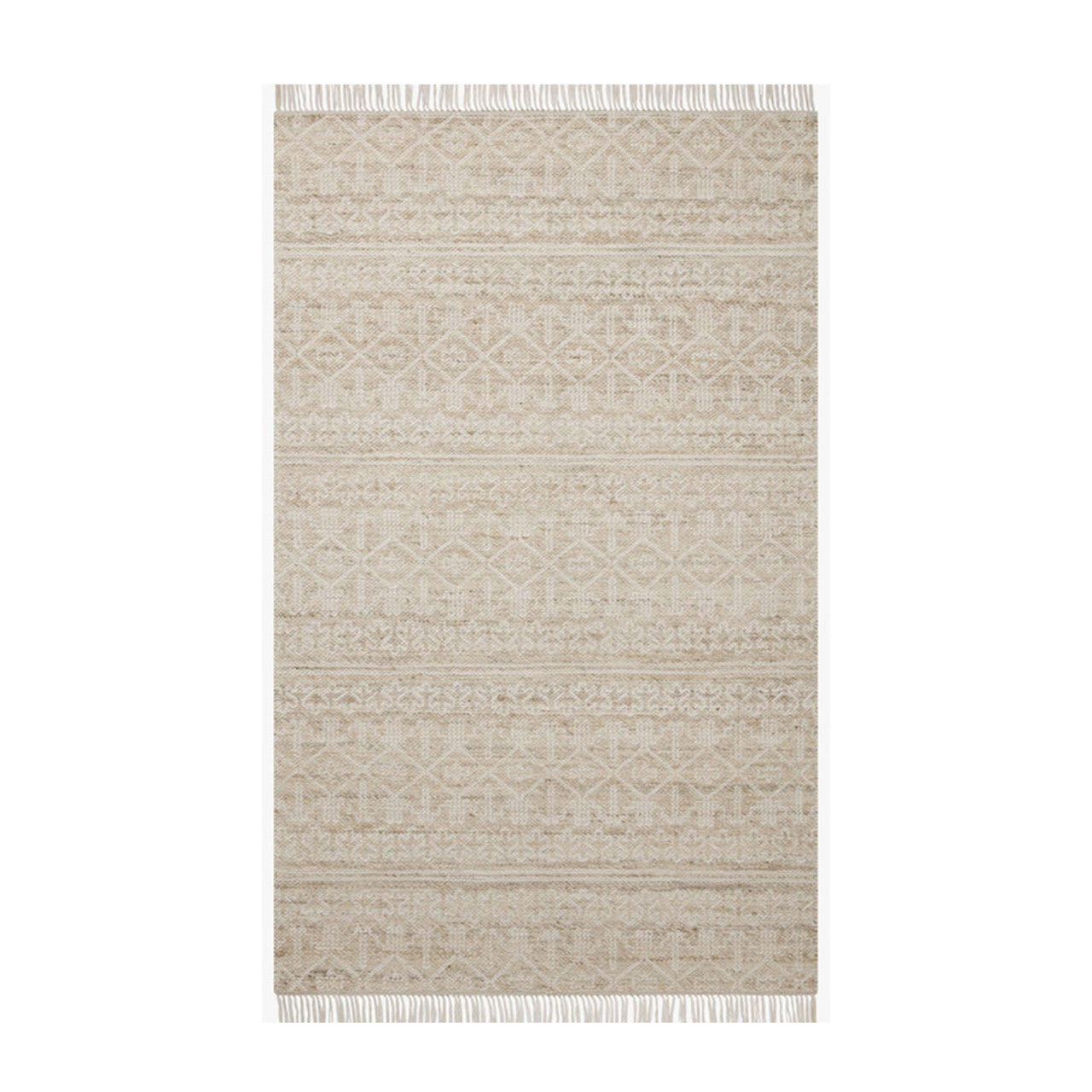 The Rivers Collection by Angela Rose x Loloi is a modern flatweave area rug with a reversible design featuring symmetrical motifs. Woven of wool, cotton, and jute, Rivers combines natural materials with an airy, natural aesthetic. The soft colors of the rug create a watercolor effect that adds artful depth to the neutral palette. Made in India and GoodWeave-certified, ensuring our commitment to ethical production and the support of weavers' communities.