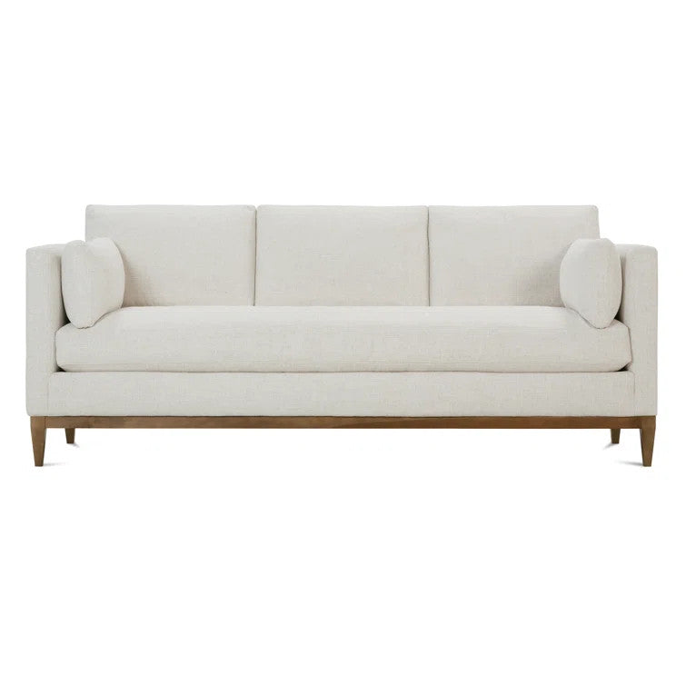 A stylish and comfortable centerpiece for your living room - the Leo Sofa by Rowe Furniture. With its sinuous underconstruction and upholstered design, this sofa offers both support and relaxation. The loose pillow back adds an extra touch of comfort. Elevate your home with this inviting couch, featuring a wooden frame that complements any decor.
