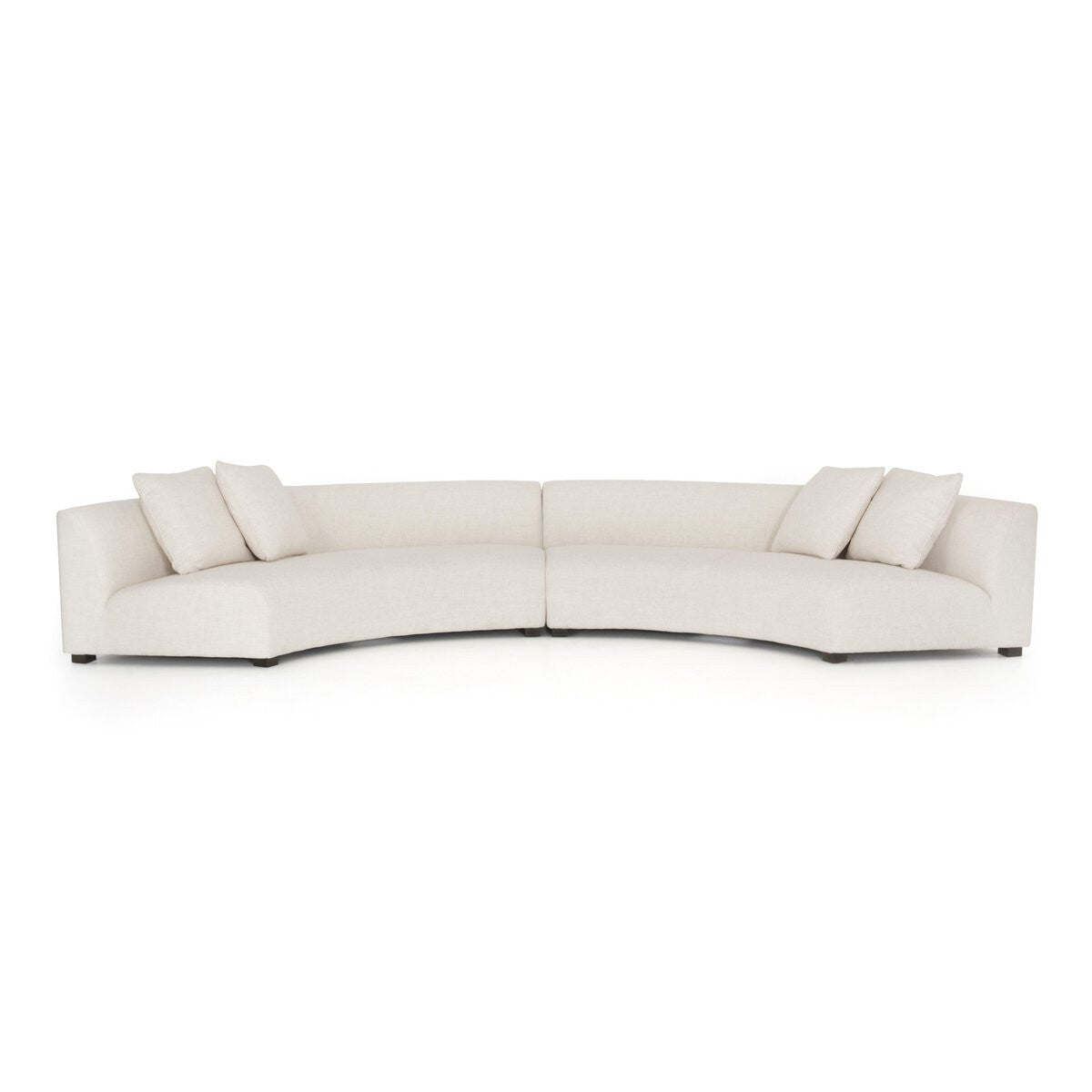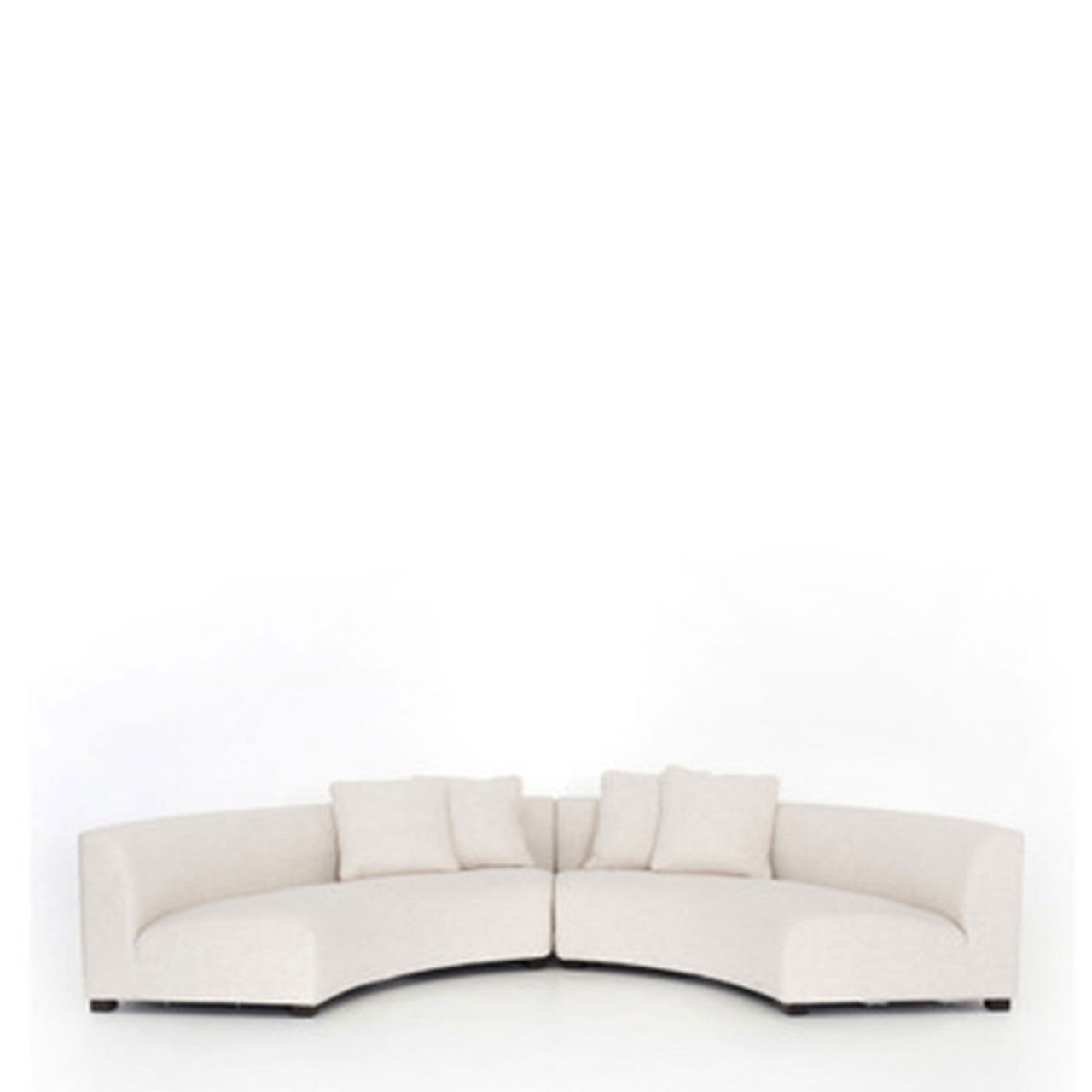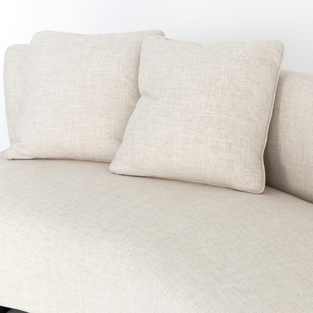 Eye-catching at every curve. A sophisticated take on sleek Italian design, cream linen-blend covering fashions an elongated crescent, bringing shapely effect to the modular sectional.